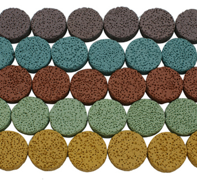 Бусины из натуральной лавы круглые. Плоские. Имеют натуральный, слегка приглушенный цвет. Представлены в нескольких цветах.