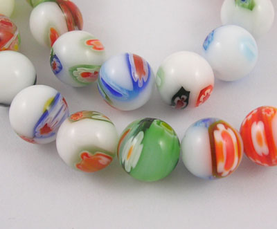 Бусины изготовлены в муранской технике из стекла миллефиори. Представлены в белом цвете. Внутри маленькие цветочки контрасного цвета по отношению к основному. Купить бусины миллефиори можно от 1шт.