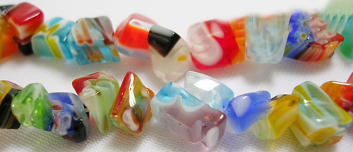 Бусины изготовлены в муранской технике из стекла миллефиори. Представлены в разных цветах и разной формы. Внутри маленькие цветочки контрасного цвета по отношению к основному. Купить бусины миллефиори можно от 1нити ( около 55 штук в нитке).