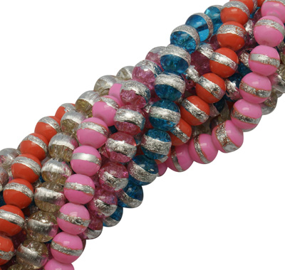 Бусины стеклянные. Имеют на поверхности серебристую полоску по окружности. Купить бусины можно от 10 шт.