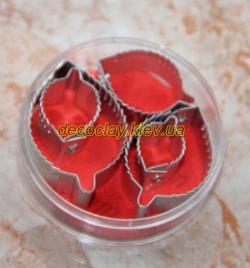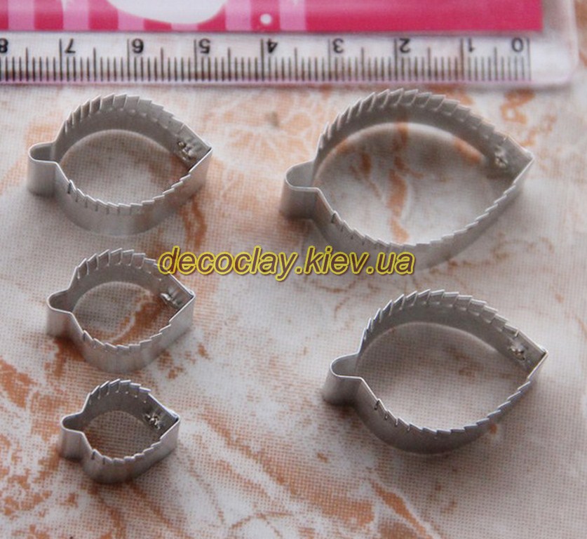 Сэт из 5-ти вырубок листа розы маленького размера. Имеет очень четкие зубчики, что облегчает ситуацию с их вырезанием. Даже после прокатки лепестка стэком они остаются видны. Продаются вместе с прозрачной пластиковой коробочкой, что облегчает их хранение и препятствует случайной потере и деформации.