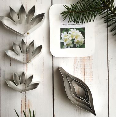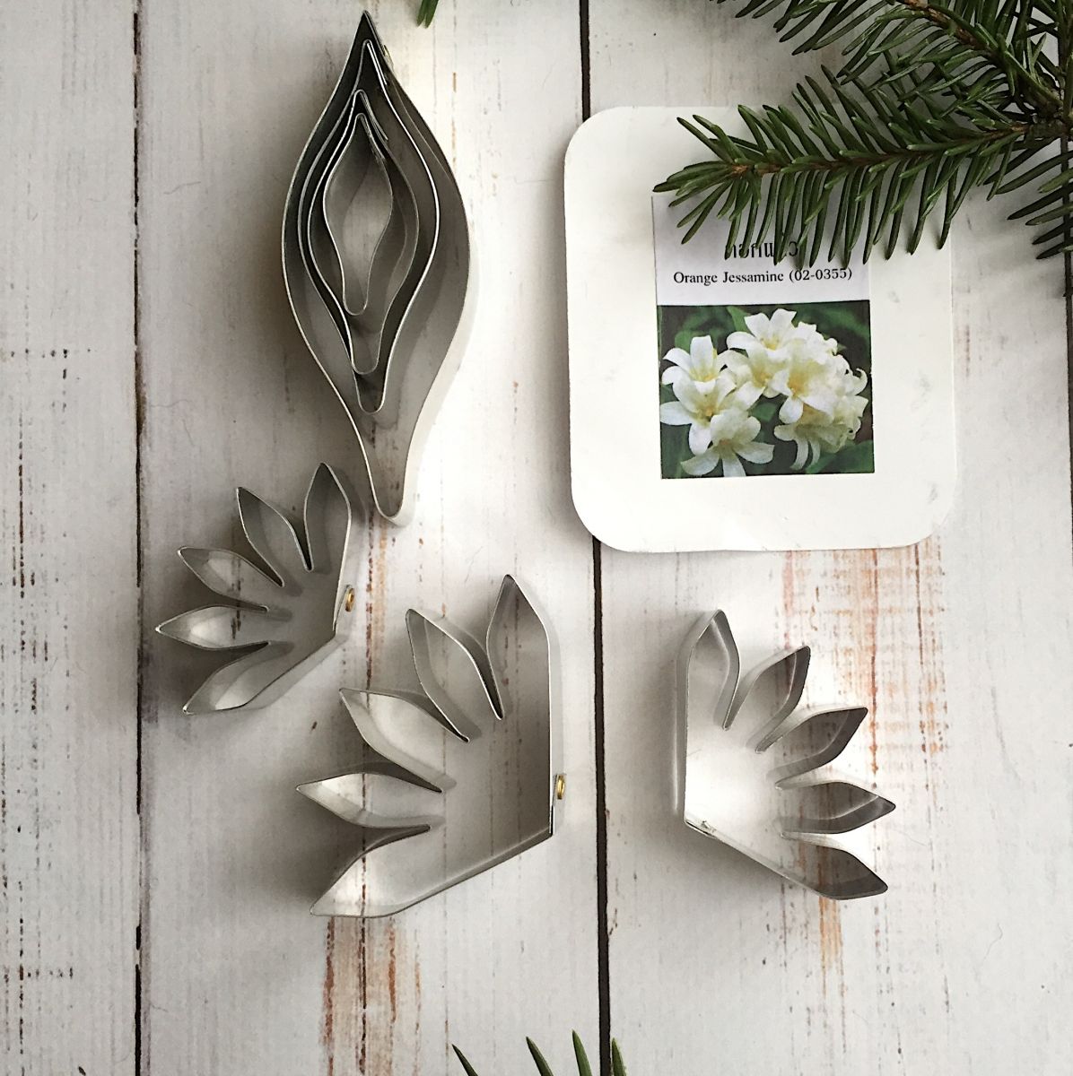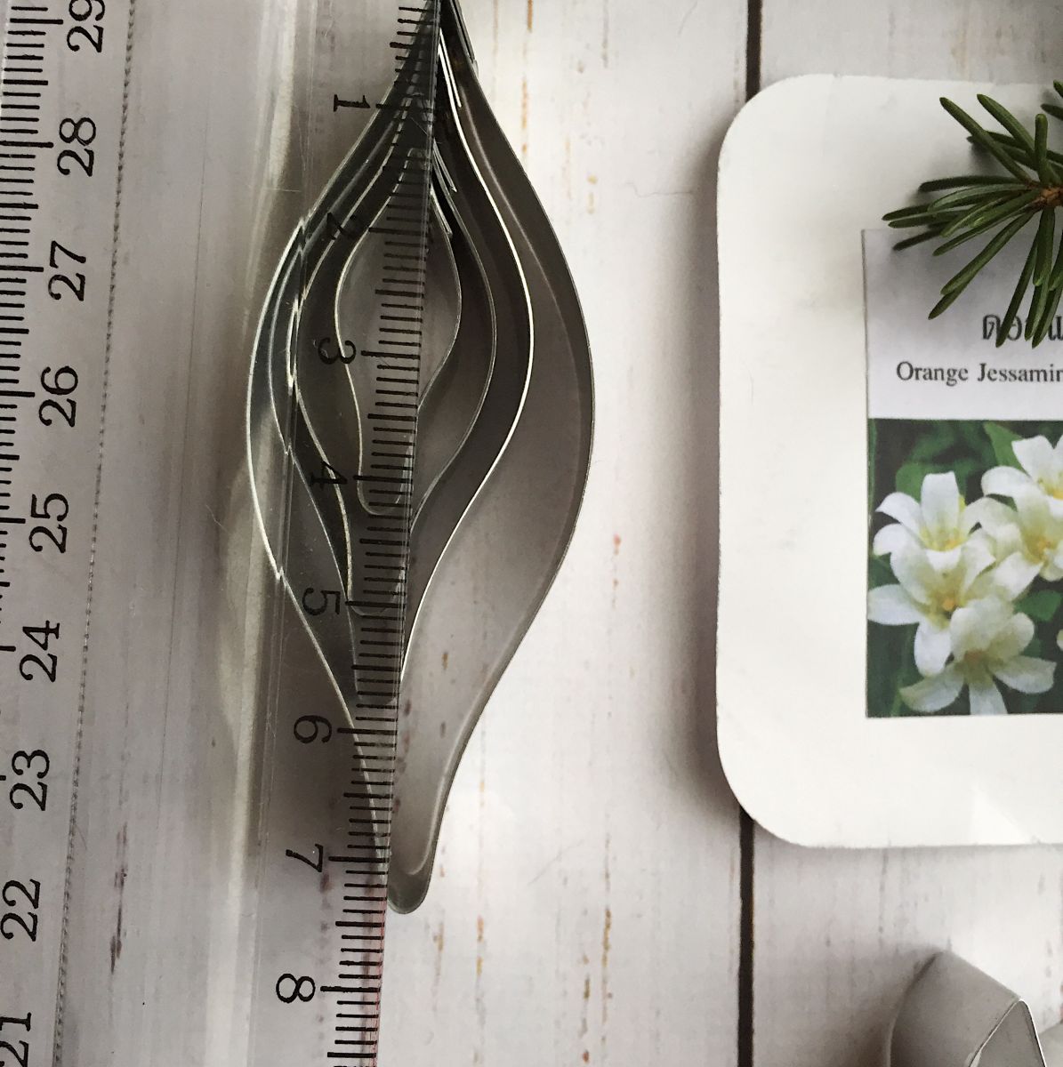 Вырубка для жасмина в трех размерах изготовлен из прочного металла. В комплект входят: каттер листа в 4-х размерах и каттер цветка в 3-х размерах. Размерная линейка идеально подходит для изготовления реалистичного жасмина натурального размера.