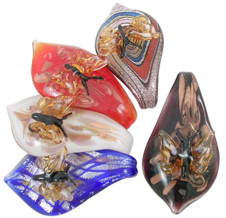 Кулоны выполнены в технике венецианского стекла с использованием вкраплений золотистой фольги. Сверху декорированы объемной бабочкой. Цвета в ассортименте. Ручная работа. Купить кулоны можно от 1-ой шт.