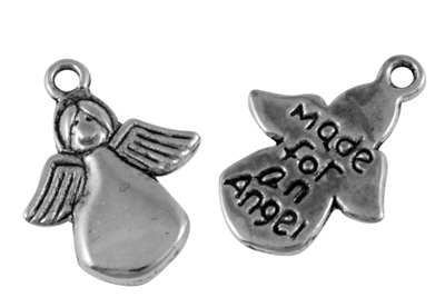 Подвеска в виде ангела. Не содержит в своем составе литий. Двухсторонняя. На обратной стороне надпись "Сделано для ангела"