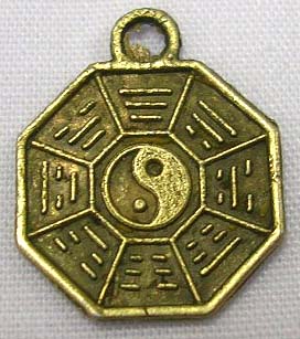 Подвеска в виде китайской монетки с изображением символа Инь-Янь и знаками с Китайской Книги Перемен.