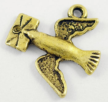 Подвеска в виде почтового голубя с письмом. Не содержит в своем составе литий, кадмий и никель. Односторонняя.