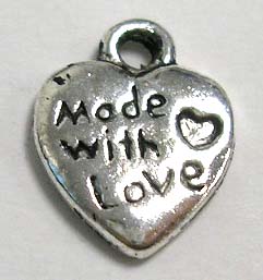 Подвеска в виде сердца с надписью "Сделано с любовью". Не содержит в своем составе литий. Односторонняя.