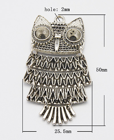 Подвеска крупного размера в виде совы с подвижными составляющими. Односторонняя. В глазах имеются углубления для вклеивания крупных стразин.
