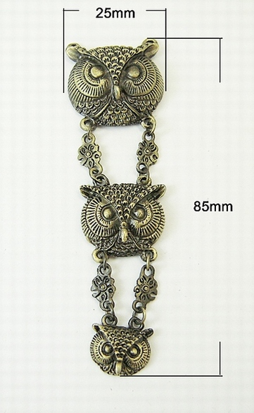Подвеска в виде 3-ех вертикально сцепленых между собой голов совы разного размера. Не содержит в своем составе никель. Односторонняя.