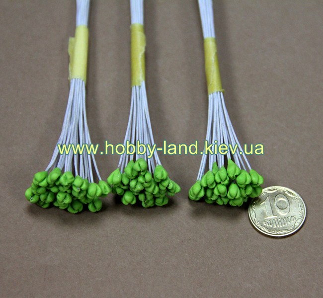 Тычинки для гортензии салатового цвета. Слеплены вручную из пластики Modern Clay. Тычинки на светло-зеленой проволоке №26. В одной упаковке 20 тычинок односторонних.
