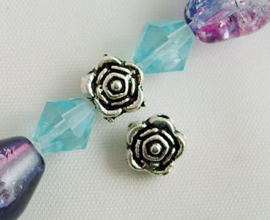 Маленькая бусина разделитель в виде цветка розы в тибетском стиле. Не содержит в своем составе никель. Двухсторонняя.