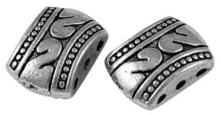 Бусина в тибетском стиле с орнаментом на поверхности. Имеет 3 ряда отверстий и может быть использована как разделитель на 3 нити. Не содержит в своем составе никель.