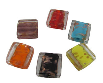 Бусины квадратные, выполнены в технике лэмпворк с использованием золотистой фольги.