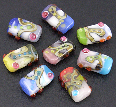 Бусины выполнены в технике лэмпворк. Имеют разноцветные  разводы на поверхности и объемные узоры в растительном стиле. Купить бусины лэмпворк можно от 1-ой шт.