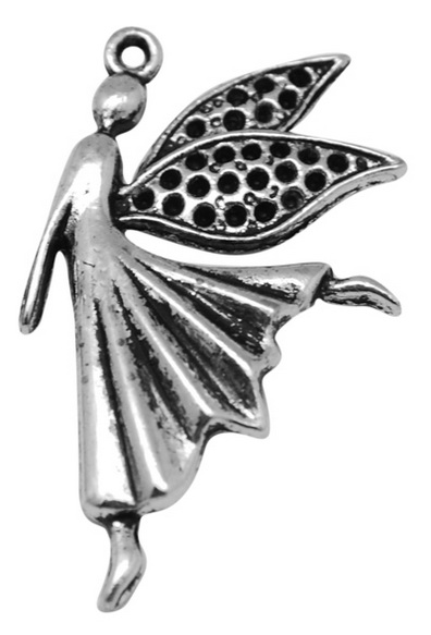 Подвеска в виде феи с крыльями. Не содержит в своем составе литий, кадмий и никель. Односторонняя. На крыльях имеются углубления для вклейки страз.