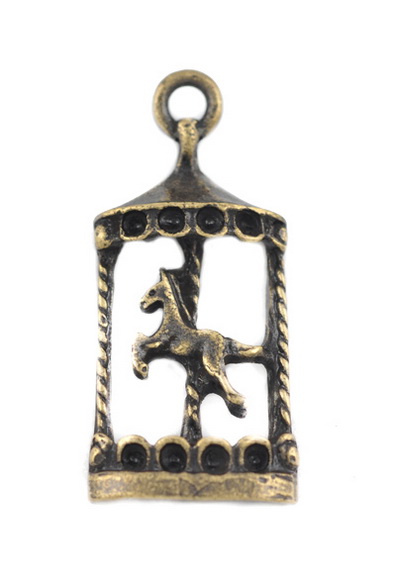 Подвеска в виде карусели с лошадкой внутри в тибетском стиле. Имеются углубления для вклейки стразин. Односторонняя.
