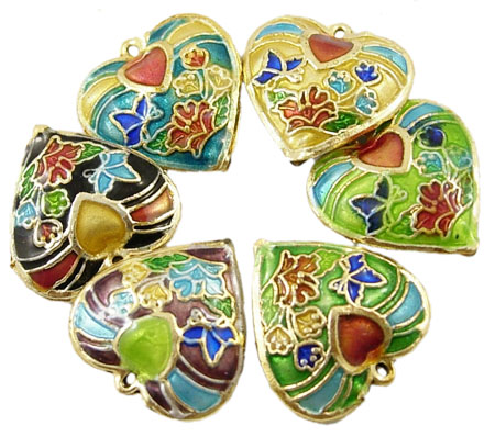 Подвеска в форме сердца, изготовленная в технике перегородчатой эмали (cloison — перегородка). Техника изготовления перегородчатой эмали примерно такова: на пластинку металла напаивают ребром тоненькие металлические полоски по контуру узора, нанесенного заранее. Получившиеся ячейки заполняют эмалью. После обжига изделие шлифуют и полируют.
