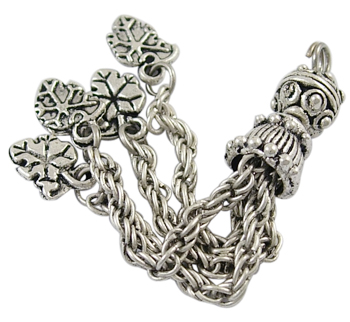 Подвеска в виде кобнимателя с 4-мя цепочками с маленькими подвесочками на концах. Не содержит в своем составе литий, кадмий. Объемная. Хорошо подойдет на брелок и как окончание крупного украшения.