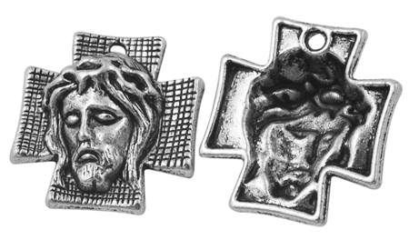 Подвеска в виде креста с рельефным изображением Спасителя. Не содержит в своем составе литий, кадмий и никель. Односторонняя.