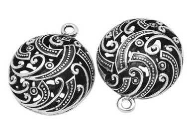 Подвеска в виде ажурной полой круглой бусинки. Не содержит в своем составе литий. Двухсторонняя. Объемная.