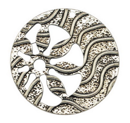 Подвеска в виде ажурного круга с цветком внутри. Не содержит в своем составе никель. Односторонняя.
