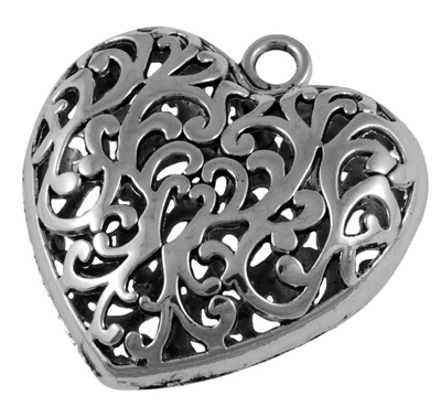 Подвеска-кулон в виде крупного полого ажурного сердца. Не содержит в своем составе литий, кадмий. Двухсторонняя.