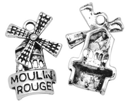 Подвеска в виде мельницы с надписью "Мулен Руж". Не содержит в своем составе литий. Односторонняя.