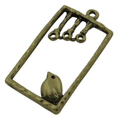 Подвеска в виде птички в рамке, односторонняя. Имеются 3 петельки для крепления декора внутри рамки и отверстие для вклеивания стразины в глаз птички.