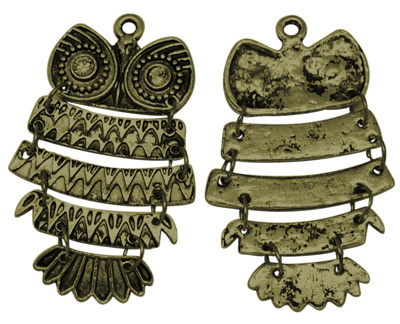 Подвеска в виде совы с подвижными составляющими тела. Не содержит в своем составе никель. В глаза можно вклеить крупные стразины. Односторонняя.