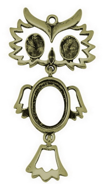 Подвеска-кулон в виде совы. Не содержит в своем составе литий и никель. Внутри имеется отверстие в которое можно вставить декор из запекаемой пластики, натурального камня, или кабошона. Также имеются углубления для вклеивания страз в глазах. Односторонняя.