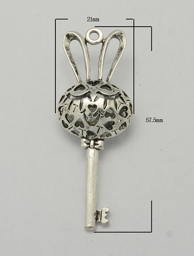 Подвеска в виде зайца с головой - ажурной полой бусиной. Не содержит в своем составе литий и никель. Двухсторонняя.