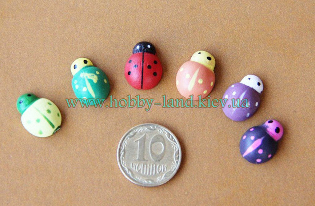 Сэт состоящий из объемных разного цвета божьих коровок. Деревянные элементы окрашены. Могут быть использованы в скрапбуккинге при изготовлении открыток, альбомов, пригласительных. Состоит из 6 элементов. Сзади имеется клейкий стикер. Купить можно от 1-го комплекта