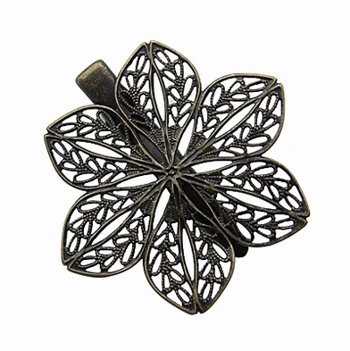Зажим для волос. Имее ажурную платформу, чем удобен для крепления декора. Толщина ажурной площадки 1 мм. Размеры 44 мм х 39 мм.