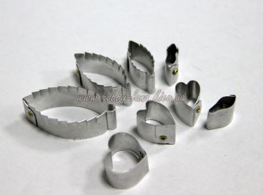 Каттер для вырезания розы Сесиль. Очень маленькая роза в народе называющаяся вьющейся, или ползучей. В комплекте каттеры для вырубки лепестков, листьев и чашелистиков. Отлично подходит для флористической бижутерии.